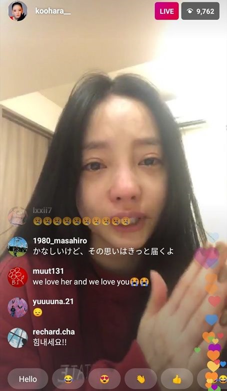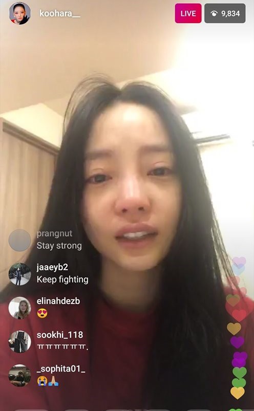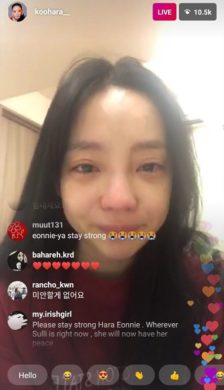 Tuy nhiên, Hara vốn đã là người mang vết sẹo tâm lý từ trước, cộng thêm vụ việc quá đột ngột từ Sulli nên cô không thể gắng gượng và đã bật khóc nức nở ngay khi lên sóng. Đôi mắt sưng vù của Hara cho thấy có lẽ cô đã khóc rất nhiều từ trước đó. Ám ảnh hơn là hành động liên tục xoa tay và nói lời xin lỗi Sulli của Hara.