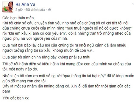Chia sẻ gây hiểu nhầm trước đó của Hà Anh |