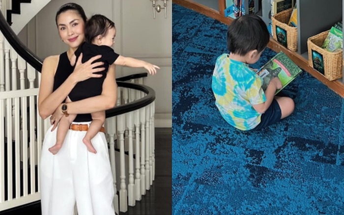 Hà Tăng tiết lộ con trai 2 tuổi đã có thói quen đặc biệt là cùng mẹ đến thư viện mỗi ngày, lâu dần nơi này thành điểm vui chơi yêu thích của bé. Vợ doanh nhân Louis Nguyễn còn cho biết cậu con trai đầu Richard Nguyễn cũng đam mê đọc sách, hiện tại luôn mang sách theo khắp mọi nơi để đọc. Qua chi tiết này đã phần nào chứng minh mẹ bỉm Hà Tăng dạy con rất khéo và nề nếp.