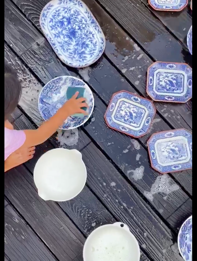 Đáng chú ý, Hà Tăng còn chia sẻ khoảnh khắc con trai và con gái tỉ mỉ rửa từng chiếc bát, đĩa sứ cổ phụ giúp mẹ. Việc làm của 2 nhóc tỳ khiến Hà Tăng vô cùng tự hào: "Nhà có 2 em sen rửa dĩa cho mẹ, mẹ hạnh phúc vô cùng". Bà xã Louis Nguyễn cho biết thêm, cô có thú vui sưu tập đĩa sứ, mỗi lần đi du lịch đều cố tìm mua về làm kỷ niệm, lâu lâu lại lấy ra rửa dọn chứ không dám dùng.