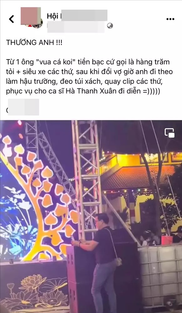 Trong một diễn biến khác, trên mạng xã hội bất ngờ lan truyền đoạn clip về "Vua cá Koi" và ca sĩ Hà Thanh Xuân có nội dung: "Từ ông 'vua cá Koi' tiền bạc cứ gọi là hàng trăm tỷ lẫn siêu xe, sau khi đổi vợ giờ anh đi theo làm hậu trường, đeo túi xách, quay clip các thứ, phục vụ cho ca sĩ Hà Thanh Xuân đi diễn".