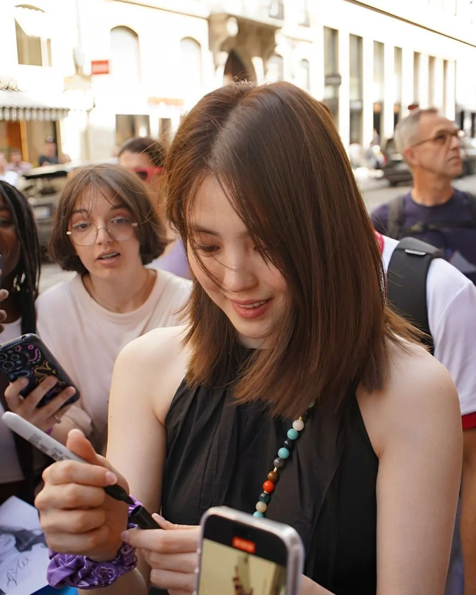 Trước đó vào ngày 6/8, Han So Hee đã khiến tất cả phải trầm trồ với diện mạo mới trên đường sang Pháp. Có mặt tại sân bay Incheon, mỹ nhân này không chỉ khiến fan hay người qua đường ở sân bay nối đuôi nhau bám theo để ngắm nhìn, mà còn làm netizen ngồi nhà trầm trồ với diện mạo nâng tầm nhờ mái tóc ngắn. Thậm chí cô còn làm lu mờ cả "đóa hồng" Rosé (BLACKPINK) cũng xuất hiện tại sân bay cùng ngày.