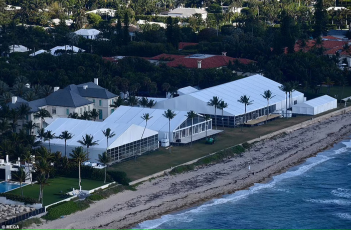 Theo đó, biệt thự trên có tổng diện tích lên tới 4.087m2 bao gồm cả phần bãi biển và có giá tri tới đến 99.8 triệu đô la (2.283 tỷ đồng). Hiện, địa điểm tổ chức đám cưới đã được phủ kín phông bạt trắng, mọi thứ đã chuẩn bị sẵn sàng.