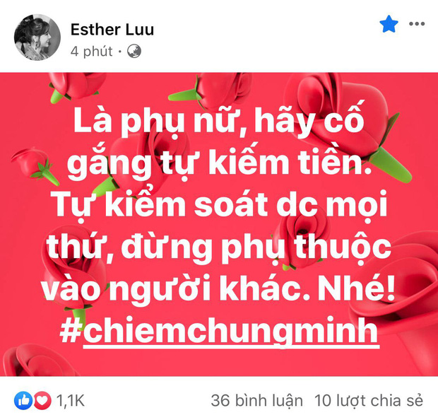 Mới đây nhất, cô khiến dân tình đổ dồn chú ý khi bất ngờ nêu quan điểm của mình về chuyện phụ nữ hiện nay cần phải độc lập về tài chính. Cụ thể, Hari Won viết: "Là phụ nữ, hãy cố gắng tự kiếm tiền, tự kiểm soát mọi thứ, đừng phụ thuộc vào người khác, nhé!".