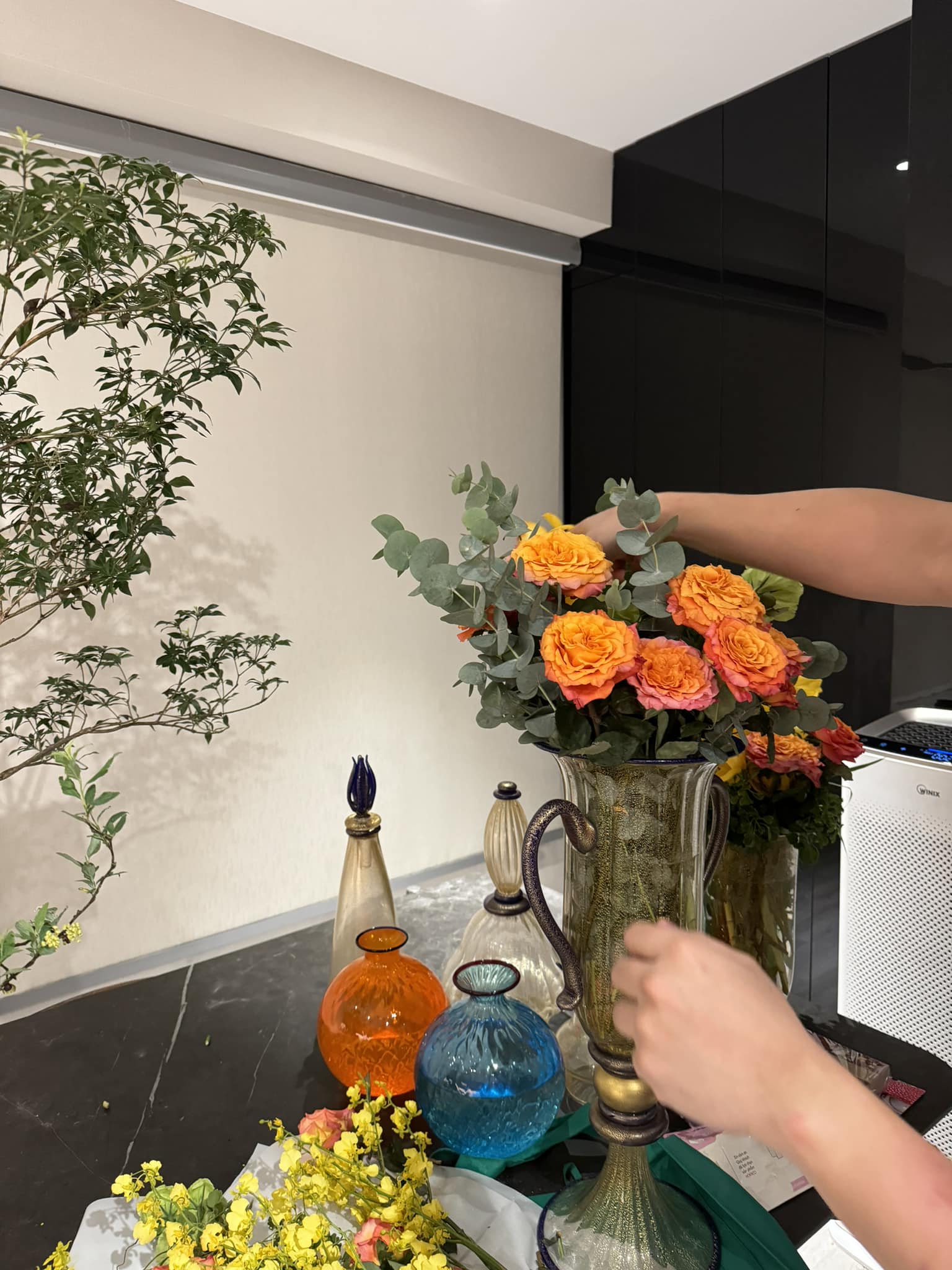 Hari Won còn tiết lộ, sau khi hoàn thành xong tác phẩm của mình, Trấn Thành chưa chịu đi ngủ mà vẫn tập trung sắp xếp, bày trí không gian trong nhà.