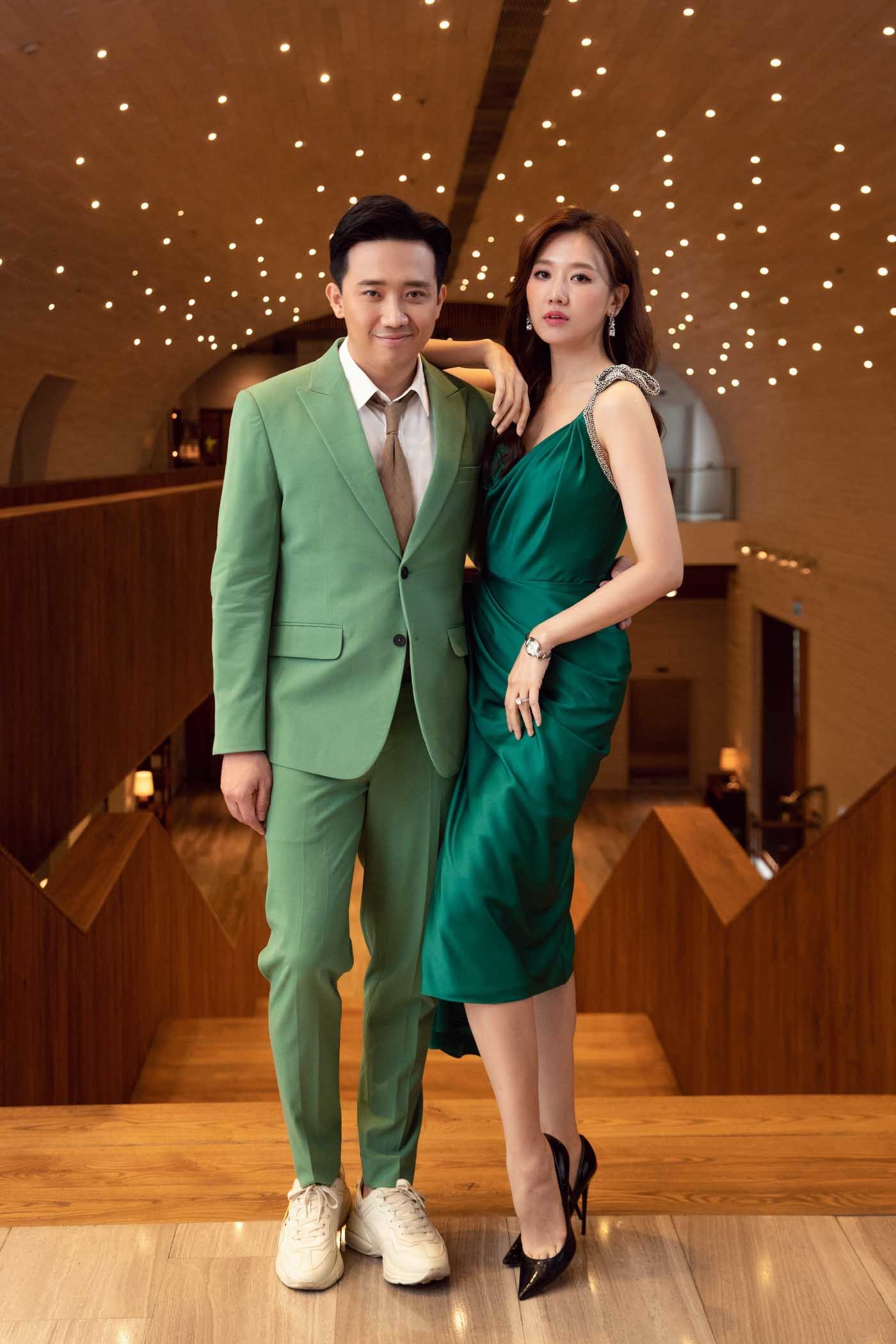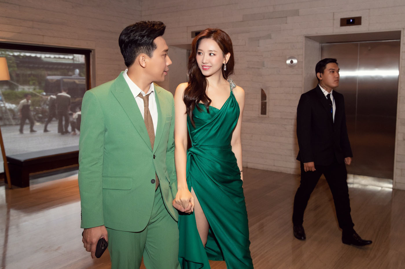 Trấn Thành cùng bà xã Hari Won vừa xuất hiện tại một sự kiện ở TP.HCM. Trong khi Hari Won diện đầm xanh ôm sát thì ông xã Trấn Thành trung thành với suit lịch lãm. Cả hai mặc trang phục gam màu xanh đồng điệu và nắm tay nhau không rời, liên tục trao ánh nhìn tình tứ.