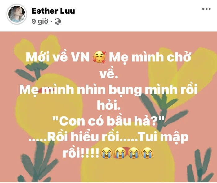 "Mới về Việt Nam, mẹ mình chở về. Mẹ mình nhìn bụng mình rồi hỏi: 'Con có bầu hả?'. Rồi, hiểu rồi. Tui mập rồi", Hari Won dở khóc dở cười kể lại.
