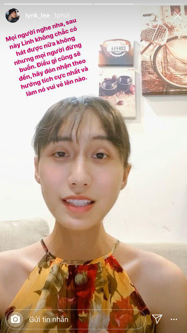Mới đây, Lynk Lee bất ngờ tiết lộ sau này có thể mình sẽ không hát được nữa khiến người hâm mộ không khỏi hoang mang. Theo đó, trong một đoạn clip khoe giọng hát, Lynk Lee chia sẻ: "Sau này Linh không chắc có thể hát được nữa không nhưng mọi người đừng buồn. Điều gì cũng sẽ đến, hãy đón nhận theo hướng tính cực và làm nó vui vẻ lên nào".
