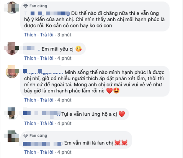Sau lời tâm sự của Khởi My, đông đảo người hâm mộ đã để lại bình luận động viên, ủng hộ nữ ca sĩ và cho biết luôn tôn trọng quyết định của vợ chồng cô.