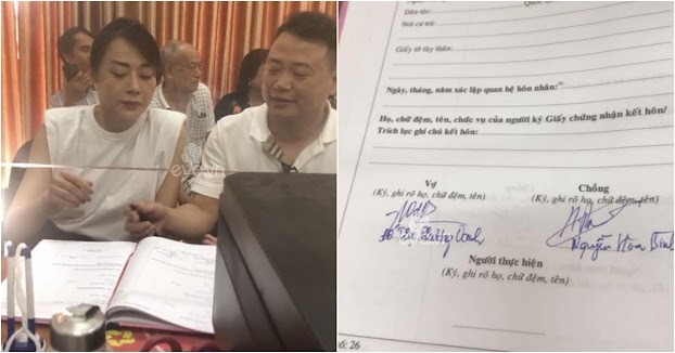 Ngày 15/6 vừa qua, trên mạng xã hội rầm rộ lan truyền hình ảnh Phương Oanh và Shark Bình thực hiện buổi lễ trao giấy chứng nhận kết hôn tại UBND phường Liêm Chính (tỉnh Hà Nam) - quê hương của nhà gái. Xuất hiện tại buổi lễ, Phương Oanh và Shark Bình đều ăn mặc hết sức giản dị, lịch sự, khác hẳn vẻ hào nhoáng, sang chảnh thường thấy. Cặp đôi cũng tỏ ra thoải mái khi chụp ảnh kỷ niệm với nhân viên tại đây.