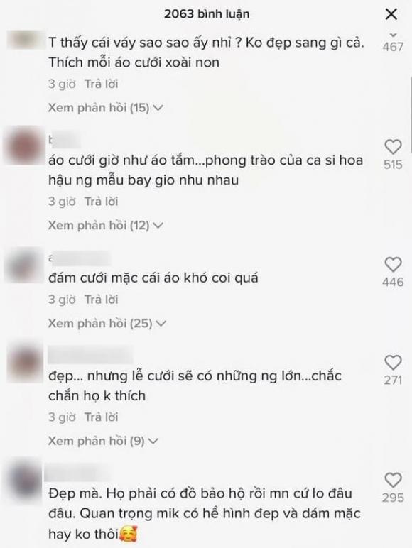 Bên cạnh những lời khen ngợi và chúc mừng dành cho cô dâu xinh đẹp trong ngày cưới, không ít cư dân mạng đã đưa ra những ý kiến trái chiều xoay quanh chiếc váy cưới mà Phương Trinh Jolie diện trong đêm tiệc.