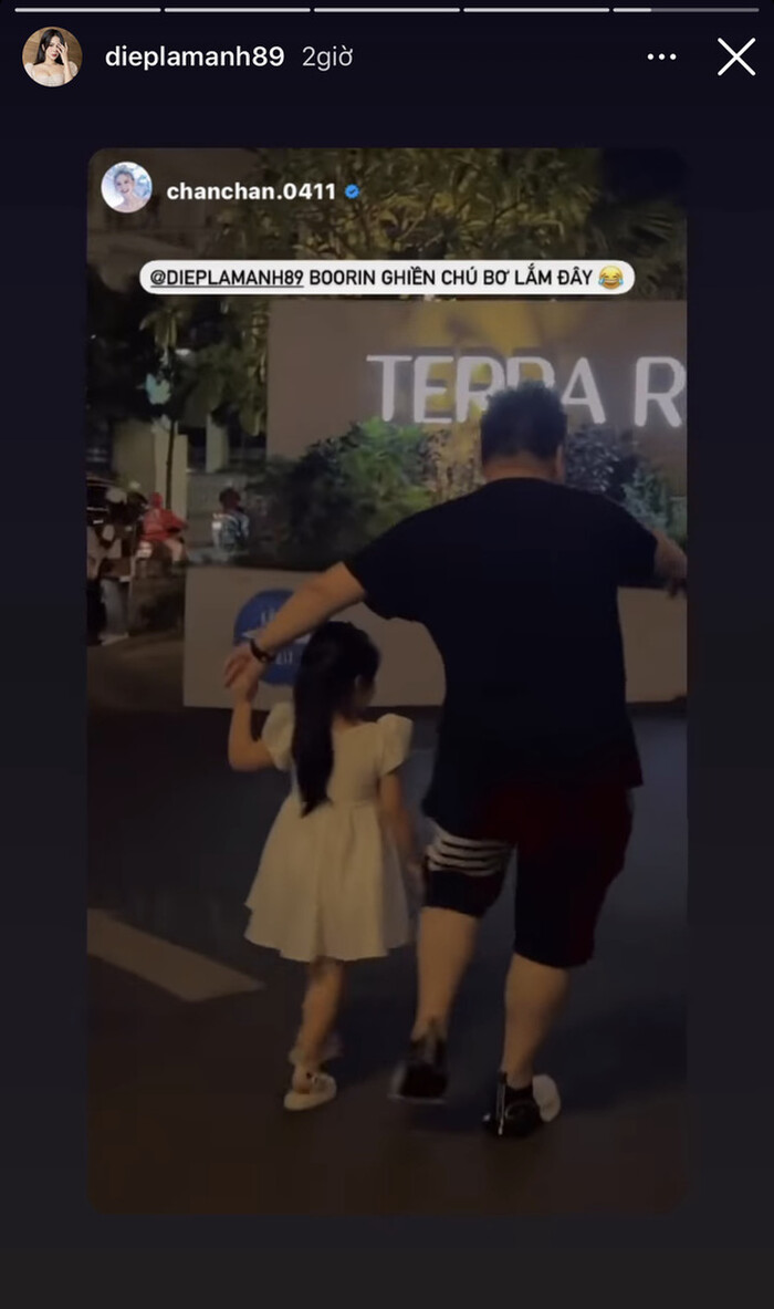 Ngay sau đó, cô nàng đã chia sẻ lại story của chị dâu là Xoài Non - vợ streamer Xemesis. Trong story là khoảnh khắc vui vẻ giữa con gái Boorin của Diệp Lâm Anh và streamer Xemesis. Xoài Non còn chú thích thêm: "Boorin ghiền chú Bơ lắm đây". Mặc dù đã ly thân với ông xã nhưng người đẹp vẫn nhận được tình cảm, sự quan tâm từ nhà chồng chỉ từ chi tiết này.