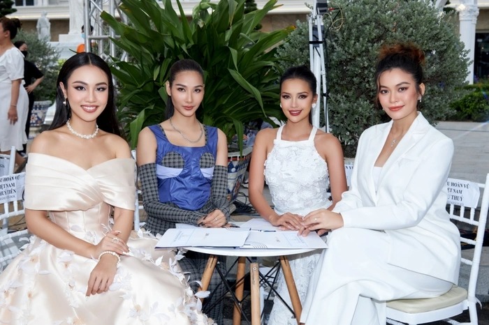 Á hậu 2 Miss Universe Vietnam 2017 xuất hiện với bộ vest trắng thanh lịch, kín đáo tại cuộc thi Hoa Khôi Sông Vàm. Được biết cô nắm giữ vai trò ban giám khảo vòng bán kết cuộc thi được diễn ra tại Cần Giuộc, Long An.