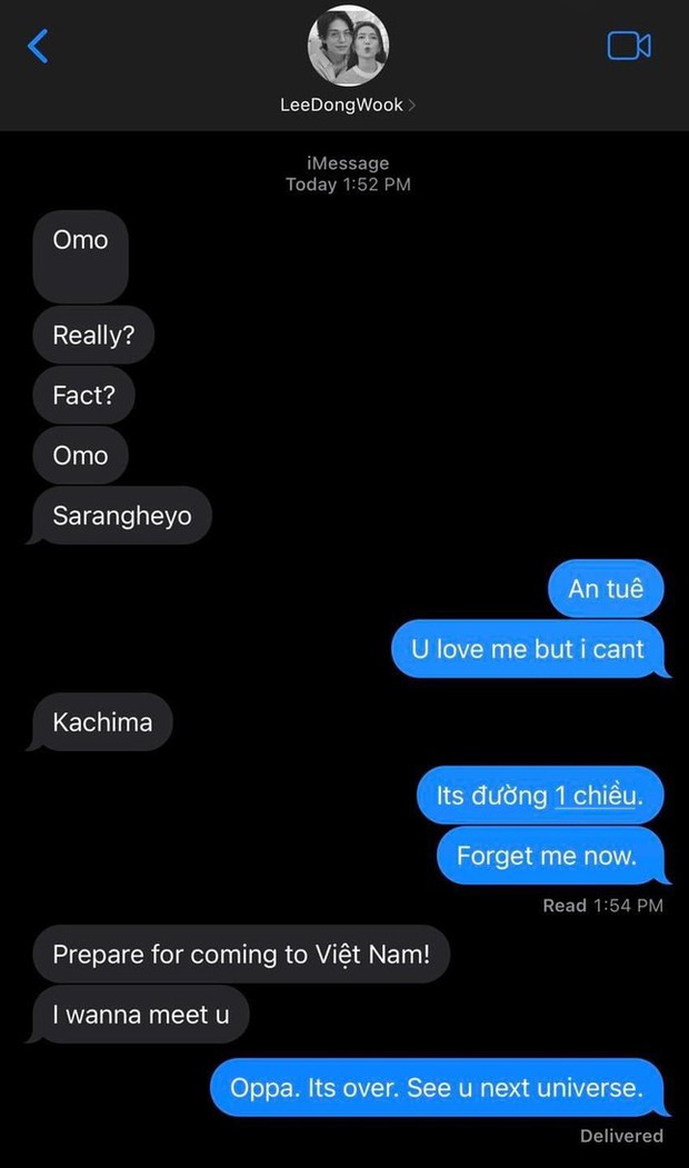 Dù vẫn biết những đoạn tin nhắn này là sản phẩm của photoshop nhưng dân tình vẫn vô cùng tò mò không biết Diệu Nhi nhắn nhủ gì đến các ngôi sao đình đám Kbiz. Với phong cách nhắng nhít, lầy lội đặc trưng, cách bà xã Anh Tú sử dụng kết hợp 3 ngôn ngữ Anh - Hàn - Việt càng khiến netizen cười "xỉu up xỉu down".