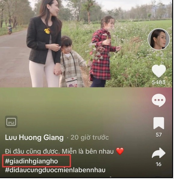 Thế nhưng bên dưới chia sẻ của mẹ bỉm 2 con, dễ dàng phát hiện có chi tiết liên quan đến ông xã. Cụ thể, Lưu Hương Giang đã đính kèm hashtag #Giadinhgiangho phía dưới bài đăng mới này. Những người theo dõi cặp đôi đều biết đây chính là cụm từ "Gia đình Giang Hồ" - cách ghép tên độc lạ của Lưu Hương Giang và Hồ Hoài Anh. Cặp đôi cũng có một kênh YouTube hơn 51 nghìn người theo dõi có tên là "Gia đình Giang Hồ".
