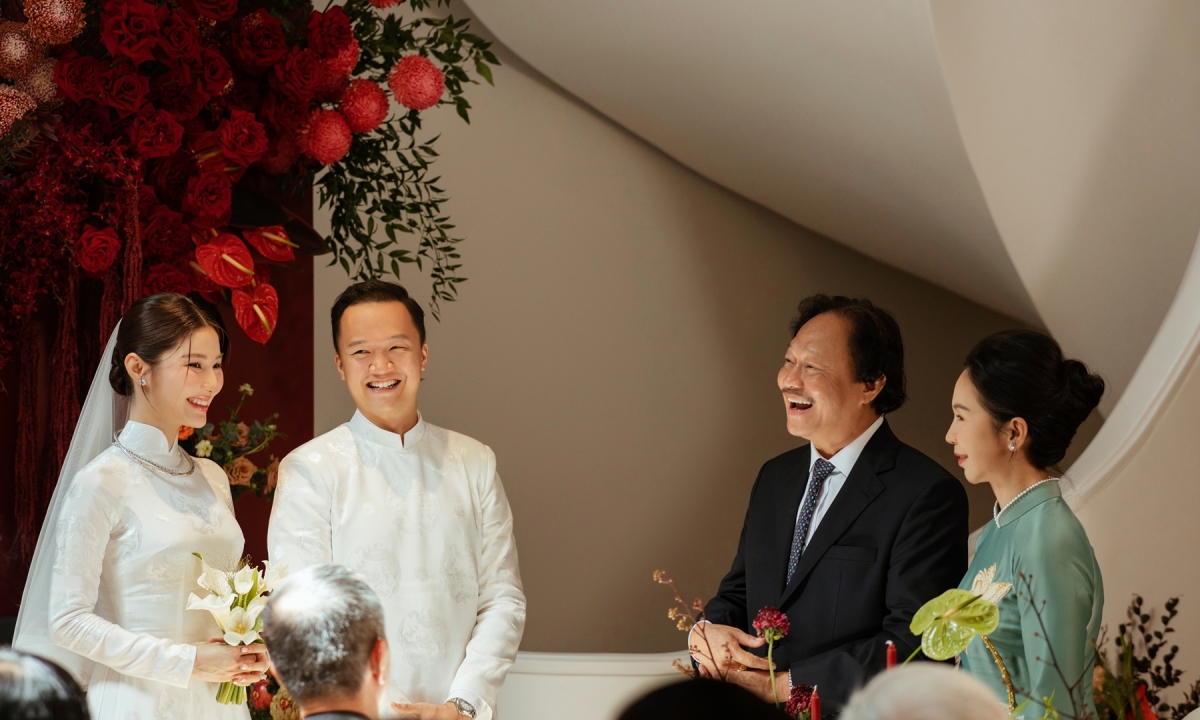 Trong ngày đón con dâu về, bố mẹ chồng Diễm My 9X bày tỏ niềm vui, hạnh phúc và tuyên bố tặng căn biệt thự cho đôi vợ chồng son. Đồng thời, bố mẹ của chú rể Vinh Nguyễn còn bày tỏ mong ước sớm có cháu nội bồng bế.