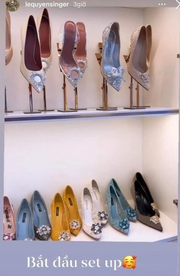 Trên trang cá nhân, thỉnh thoảng Lệ Quyên cũng flex một góc tủ chứa đầy túi Hermes hay những đôi giày lấp lánh theo sở thích.
