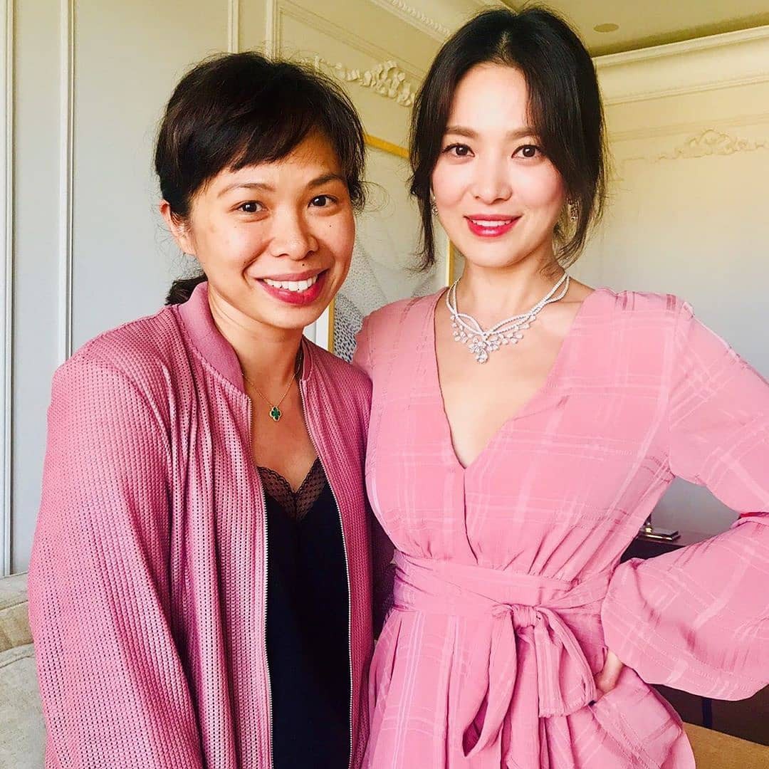 Mới đây, Tổng biên tập của một tạp chí Hong Kong đã bất ngờ chia sẻ hình ảnh chụp cùng Song Hye Kyo lên trang cá nhân. Trong ảnh, Song Hye Kyo diện váy hồng nữ tính, trang điểm đậm chụp ảnh thân thiết cùng người này.
