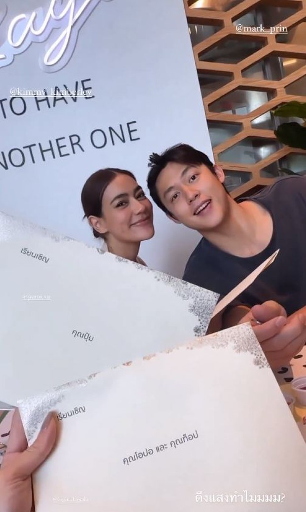 Đáng chú ý ngay lúc này, cặp đôi đã bắt đầu đi phát thiếp mời đến các khách mời. Rất nhiều nghệ sĩ trong làng giải trí xứ chùa vàng đã nhận được thiệp cưới của họ và đăng tải trên mạng xã hội. Đặc biệt, hình ảnh cô dâu chú rể nhìn nhau nở nụ cười hạnh phúc được in nổi bật trên thiệp cưới đã nhanh chóng thu hút được chú ý của người hâm mộ.