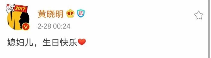 Hôm qua (ngày 28 tháng 2) là sinh nhật của Angelababy, 0h vừa điểm, Huỳnh Hiểu Minh đã đăng bài chúc mừng sinh nhật bà xã: “Vợ yêu sinh nhật vui vẻ”. Nhưng trôi qua hết ngày, bài đăng của “Huỳnh Giáo chủ” không hề được vợ hồi đáp. Hành động của Huỳnh Hiểu Minh như là “tình đơn phương”, cố gắng canh đúng thời điểm đặc biệt nhưng chẳng được đáp lại dù đối phương đã là vợ của mình.