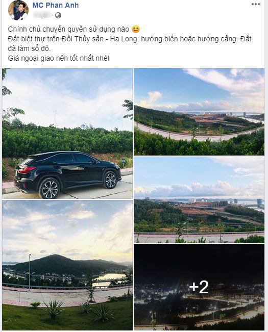 Cách đây ít giờ, nam MC tiếp tục rao bán đất biệt thự ven biển ở Hạ Long: "Chính chủ chuyển quyền sử dụng nào. Đất biệt thự trên Đồi Thủy sản - Hạ Long, hướng biển hoặc hướng cảng. Đất đã làm sổ đỏ. Giá ngoại giao nên tốt nhất nhé!".