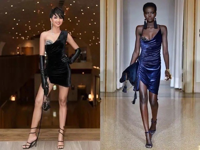 Bên cạnh đó, nhiều thiết kế mà H'Hen mặc cũng được nhiều nhà mốt nước khác đạo nhái. Trang phục bên trái được cho là thua xa bản gốc mà H'Hen Niê mặc.