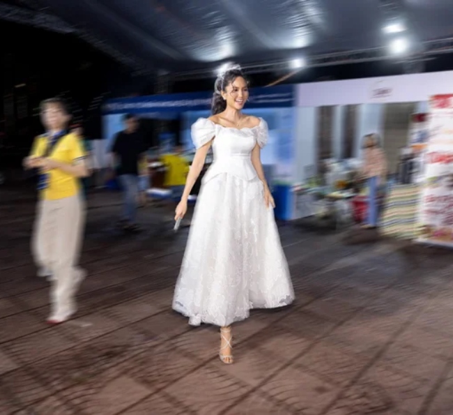 Tại sự kiện, H'Hen Niê diện một bộ váy trắng bồng bềnh, thiết kế xòe nhẹ nhàng giúp tôn lên vẻ đẹp thanh thoát như một nàng công chúa bước ra từ những trang truyện cổ tích. Điểm nhấn trên mái tóc được cột nơ tinh tế càng làm nổi bật nét dịu dàng nhưng không kém phần sang trọng của cô. Dù vòng eo thon gọn ngày nào giờ đã nhường chỗ cho chiếc bụng bầu đầy ý nghĩa, vóc dáng của H'Hen Niê vẫn giữ được sự gọn gàng, cân đối, chứng minh rằng cô vẫn luôn chăm chút cho ngoại hình và sức khỏe trong thời kỳ đặc biệt này.