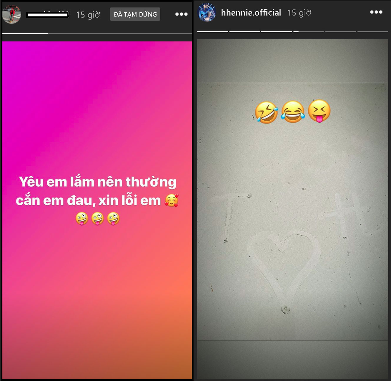 Mới đây, H'Hen Niê và bạn trai tin đồn bất ngờ đăng trạng thái ngọt ngào như một cách thể hiện tình cảm kín đáo dành cho đối phương lên trang cá nhân. Cụ thể, H'Hen Niê đã chia sẻ bức hình vẽ trái tim cùng hai chữ cái T-H còn anh chàng bí ẩn lại đăng tải một dòng caption đầy hài hước: "Yêu em lắm nên thường cắn em đau".