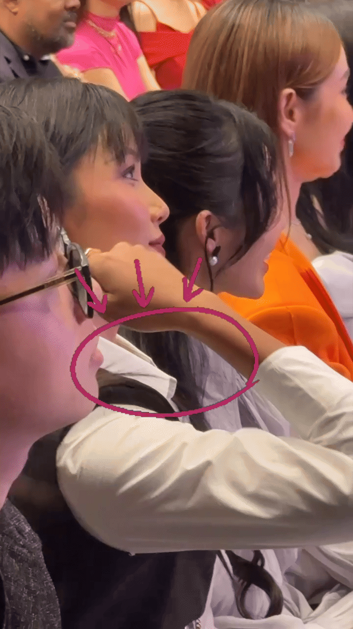 Người đẹp mặc trang phục tông màu đen trắng, khoe chân dài thẳng tắp tại sự kiện. Trong clip này, cư dân mạng đổ dồn sự chú ý vào chiếc nhẫn cỡ "khủng" mà nàng hậu sinh năm 1992 đeo ở ngón áp út. Ngón áp út là ngón tay đại diện cho mối quan hệ tình cảm, chiếc nhẫn đeo ở đây biểu tượng cho những người đã có người yêu hoặc đã kết hôn.