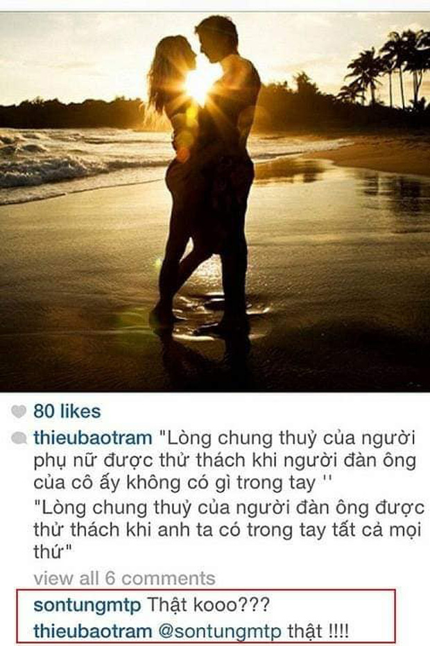 Thời điểm này, Sơn Tùng và Thiều Bảo Trâm chỉ mới 19 tuổi. Cả 2 rất thoải mái dành lời yêu thương và tương tác với nhau trên MXH