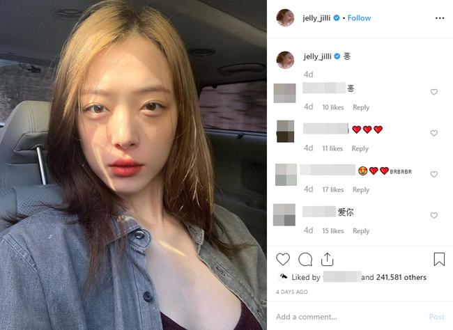 Lục lại trang cá nhân của Sulli, bài đăng cuối cùng của cô là cách đây 1 ngày, hình ảnh cuối cùng của Sulli là bức ảnh selfie trên ô tô rất bình thường. Tuy nhiên, khi đăng bức ảnh này, Sulli chỉ để dòng chú thích ngắn gọn: "Red" (Đỏ). Tại thời điểm đó, dòng chú thích này có vẻ không đáng chú ý nhưng sau khi Sulli qua đời, có khá nhiều giải thuyết được đặt ra. Trong đó có ý kiến cho rằng Sulli đang muốn ngầm ra hiệu rằng tình trạng của cô đang ở mức báo động nguy hiểm.