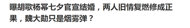 Cũng có người đặt nghi vấn về tin đồn Dương Mịch đang hẹn hò, thậm chí là đã sống chung với "tình trẻ" Ngụy Đại Huân. Tuy nhiên, người tiết lộ thông tin lại trực tiếp phủ nhận tình yêu của cặp đôi chị em này và cho biết, có ekip của 1 phóng viên giải trí tung thông tin về Ngụy Đại Huân như "chất xúc tác" để ép Hồ Ca và Dương Mịch công khai tình yêu.