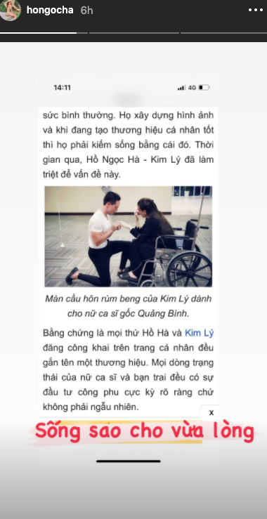 Còn ở thông tin Kim Lý chi 200-300 triệu cho chuyện cầu hôn thì Hồ Ngọc Hà lại đáp trả gay gắt hơn. Theo cô đây là thông tin viết vô cùng tiêu cực để nhắm vào một gia đình người khác. Hơn nữa, đây là một thông tin vô cùng nhảm nhỉ.