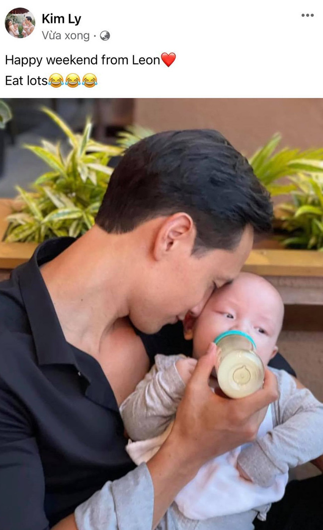 Ngoài ra, trên trang cá nhân, Kim Lý cũng chia sẻ hình ảnh anh đang cho bé Leon uống sữa. Đi kèm với hình ảnh dễ thương này, Kim Lý không quên chia sẻ: "Happy weekend from Leon, Eat lots" (tạm dịch: Niềm hạnh phúc dịp cuối tuần của Leon, ăn thật nhiều). Nhìn những khoảnh khắc chăm con mới thấy, Kim Lý đích thực là "ông bố nghiện con" nhất nhì Vbiz hiện nay.