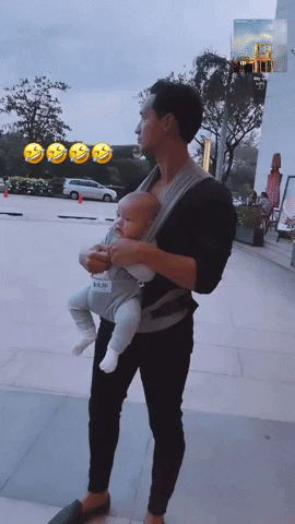 Trong đoạn clip do Hồ Ngọc Hà chia sẻ, có thể thấy, Kim Lý địu con trai trên ngực nhưng lại thể hiện gương mặt thẫn thờ vô cùng hài hước. Điều khiến công chúng chú ý hơn cả chính là biểu cảm "tấu hài" trên gương mặt của bé Leon.
