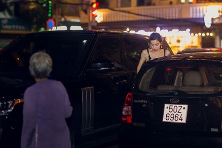 Tối khuya cùng ngày, cô tự lái Range Rover đến một khách sạn năm sao để gặp đối tác kinh doanh. Từ bãi xe vào khách sạn, nữ ca sĩ giúp đỡ một cụ già bán vé số. |