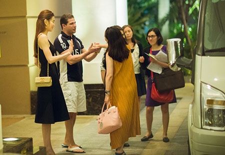 Vừa trở về TP HCM, nữ ca sĩ lập tức có buổi hẹn gặp gỡ đối tác để bàn bạc công việc.