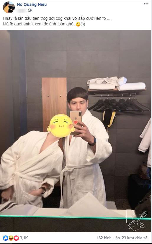 Trước sự đồn đoán của người hâm mộ, Hồ Quang Hiếu chỉ bình luận hài hước: "Hóng người tìm ra danh tính. Tôi đã chẩn thận che tận 2 lớp bảo mật cho chắc". Anh còn "lầy lội" cho biết mình và "vợ sắp cưới" đã tính đến chuyện cho con học trường nào, thậm chí còn chê người ta ngực "lép" hơn cả mình khiến dân mạng chỉ còn biết cười bò.