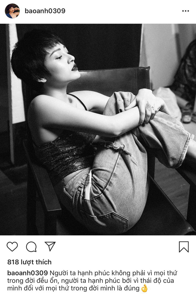 Tiếp tục để ý trên instagram của ca sĩ Bảo Anh mới đây cũng trùng hợp có dòng trạng thái bàn về hạnh phúc. Nữ ca sĩ viết: "Người ta hạnh phúc không phải vì mọi thứ trong đời đều ổn, người ta hạnh phúc bởi vì thái độ của mình đối với mọi thứ trong đời mình là đúng". Câu nói này ý ám chỉ để sống hạnh phúc vì thái độ, cách cư xử của mình với những điều đang diễn ra là chuẩn mực, đúng đắn. Dù đã chia tay Hồ Quang Hiếu từ lâu nhưng nếu đặt hai dòng trạng thái của cặp đôi cạnh nhau, nhiều người hoàn toàn có thể suy diễn Bảo Anh đang ám chỉ Hồ Quang Hiếu. Tuy nhiên, đây chỉ là phỏng đoán mà thôi.