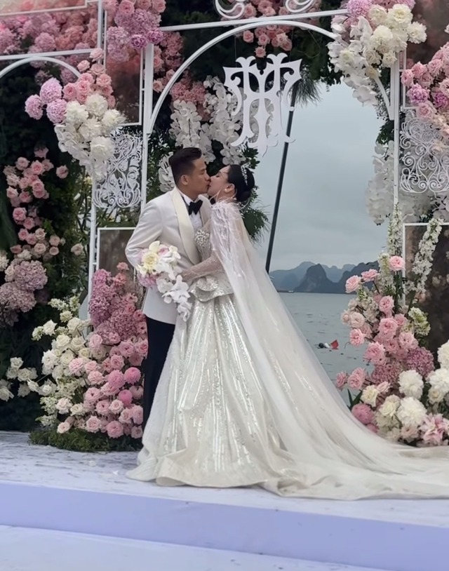 Trong giây phút thiêng liêng, nữ ca sĩ đã bật khóc nức nở và có nụ hôn say đắm bên chú rể trước sự chứng kiến của quan khách.