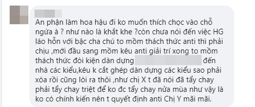 Lời bênh vực này ngay lập tức khiến người đẹp sinh năm 1995 bị ghét lây từ Hương Giang, rất nhiều cư dân mạng đã vào trang cá nhân của Khánh Vân để bày tỏ sự phẫn nộ, đồng thời không tiếc lời chỉ trích cô vì đã lên tiếng bênh vực đàn chị.
