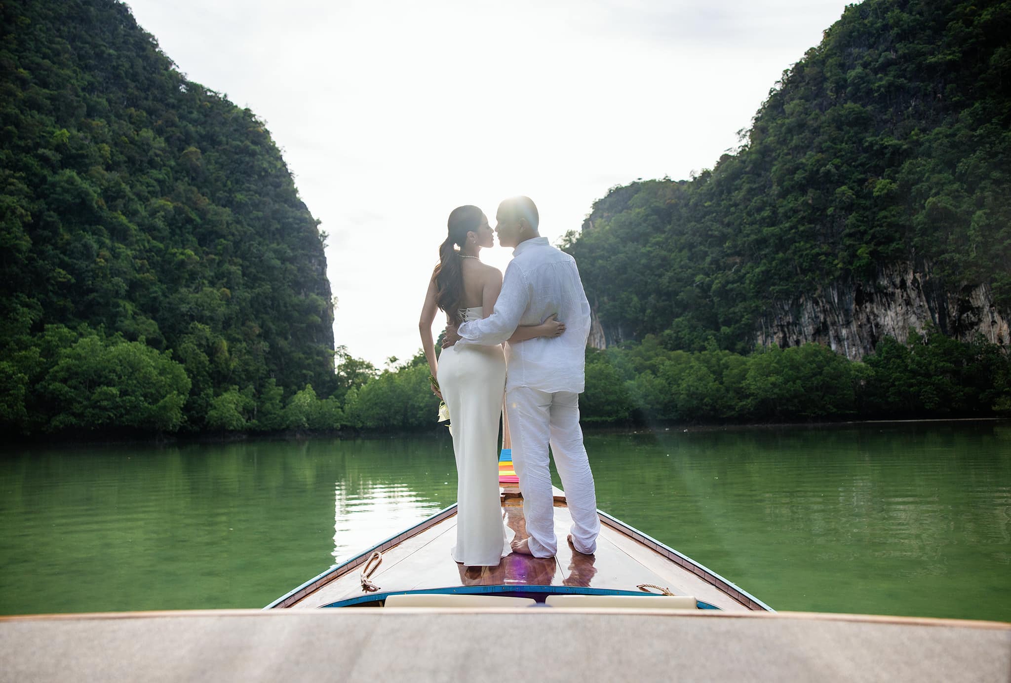 Mới đây nhất, Hoa hậu Khánh Vân tiếp tục tung bộ ảnh cưới thứ 10, giữ vững vị trí "cô dâu chịu chơi nhất tháng 12". Khánh Vân chọn chiếc váy cưới cúp ngực, ôm sát vóc dáng gợi cảm. Nàng hậu chọn bó hoa cầm tay màu trắng đơn giản, toát ra nét sang trọng và tinh tế của cô dâu mới. Nhiếp ảnh gia Long Nguyễn cũng chỉ diện cả "cây trắng" chứ không lên đồ cầu kỳ, anh có nhiều hành động ôm hôn để "đánh dấu chủ quyền" với vợ kém 17 tuổi. Ngay lập tức, Khánh Vân nhận cơn bão lời khen, netizen tiếp tục chấm hóng đến khi nào cô dâu hot hòn họt này mới "chốt sổ" số lượng bộ ảnh cưới.