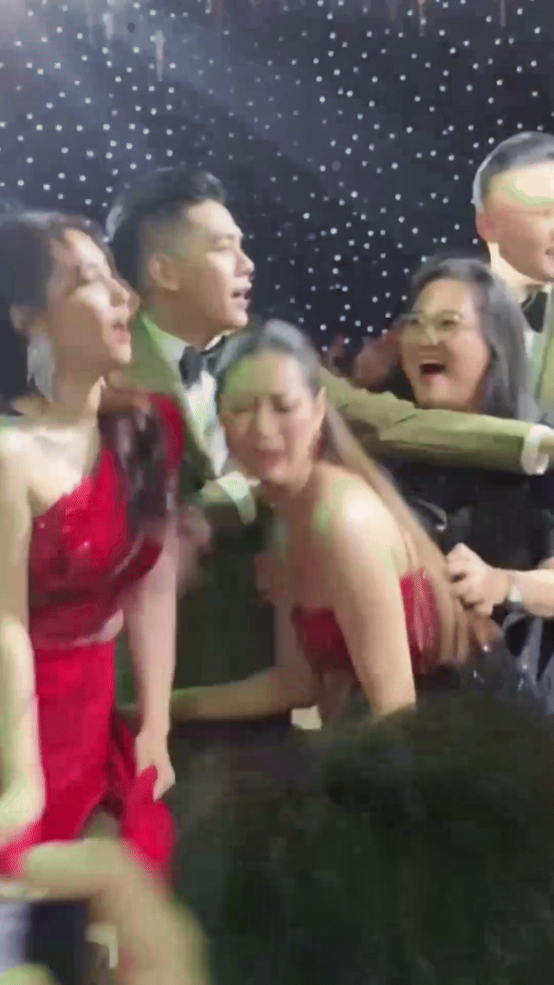 Đáng chú ý, loạt khoảnh khắc người đẹp sinh năm 1995 quậy banh nóc tại hôn lễ đã vướng tranh cãi. Trên sân khấu, Hoa hậu Khánh Vân đã nhảy nhót tưng bừng, cười thả ga hết cỡ trước đông đảo khán giả. Thậm chí, khi thấy nàng hậu quá quậy, bố của cô còn phải nhanh chóng bước lên sân khấu để kéo cô xuống phía dưới.