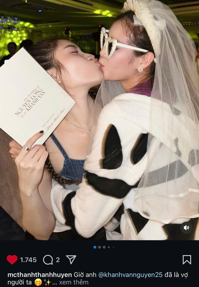 MC Thanh Thanh Huyền mới đây đã xả kho hàng loạt hình ảnh xuất hiện trong bữa tiệc này trên mạng xã hội. Cô viết: "Giờ anh Khánh Vân đã là vợ người ta". Trong đó, bức hình cô và Hoa hậu Khánh Vân công khai "khóa môi" đã gây xôn xao trên mạng xã hội. Dù biết cả hai chỉ đùa vui và đã có mối quan hệ thân thiết trong showbiz Việt nhiều năm nay, tuy nhiên netizen cho rằng Khánh Vân vẫn cần phải giữ hình tượng, có hành động phù hợp với ngôi vị của 1 Hoa hậu.