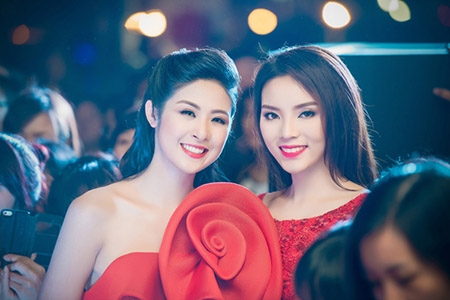 Hai người đẹp có dịp hội ngộ. Kỳ Duyên đã thân mật gọi Ngọc Hân là 'chị lớn của em'. |