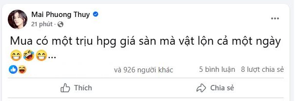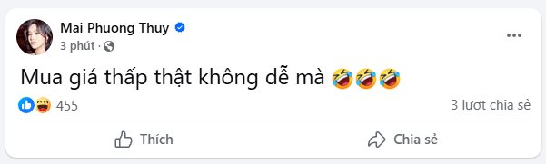 Trên trang Facebook cá nhân, hoa hậu Mai Phương Thúy vừa chia sẻ “Mua giá thấp thật không dễ mà”.