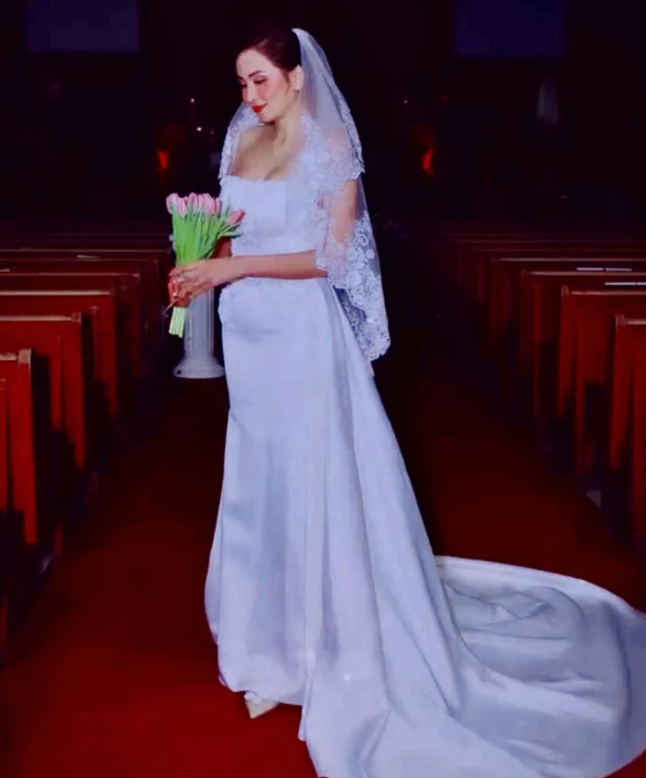 Người đẹp sinh năm 1990 diện váy cưới trắng, khoe nhan sắc rạng rỡ và tiết lộ đã tìm được một người yêu thương cô và con trai cô. Diễm Hương cũng tiết lộ thêm con trai mình đã vui vẻ gọi người bạn đời của cô là ba.