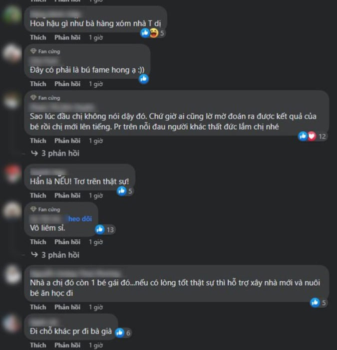 “Cậu bé còn sống thì cũng có cha, có mẹ, không cần phải nuôi. Thay vì nếu, có lòng cứ gửi thẳng gia đình người ta, chẳng ai khiến phải đăng vu vơ thế này nhiều khi gia đình cũng đâu đọc được”, “Chẳng phải lần đầu cô tuyên bố từ thiện kiểu này nhưng lần này quá lắm rồi. Chữ nếu ở đây có nghĩa lý gì nữa khi tiên lượng cậu bé rất thấp”, “Hứa hẹn với NẾU ít thôi, gia đình người ta đã đau lòng quá rồi”, “Thật sự muốn giúp thì đã không có từ NẾU”… là những bình luận của netizen dưới bài viết của Phương Lê.