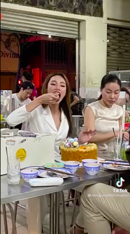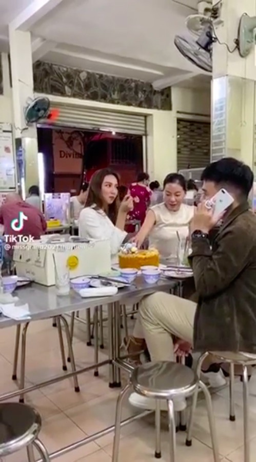 Theo đó một "camera chạy bằng cơm" đã bất ngờ bắt trọn khoảnh khắc nàng Hậu xuống phố với ê-kíp của mìn. Đáng chú ý, người này còn tóm trọn biểu cảm của Thùy Tiên khi gặp sự cố mở cửa nhầm ô tô của người khác.