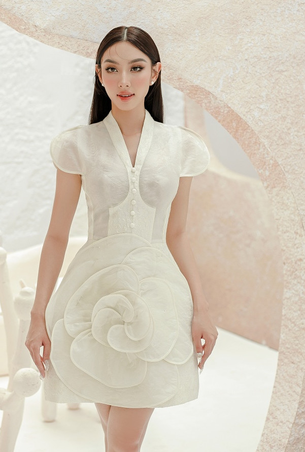 Trong bộ ảnh mới, hoa hậu Nguyễn Thúc Thùy Tiên từ bỏ vẻ quyến rũ quen thuộc để biến hóa và theo đuổi phong cách ngọt ngào. Kết hợp trang phục, Thùy Tiên chọn lối trang điểm nhẹ nhàng, trong trẻo cùng mái tóc dài suôn thẳng.